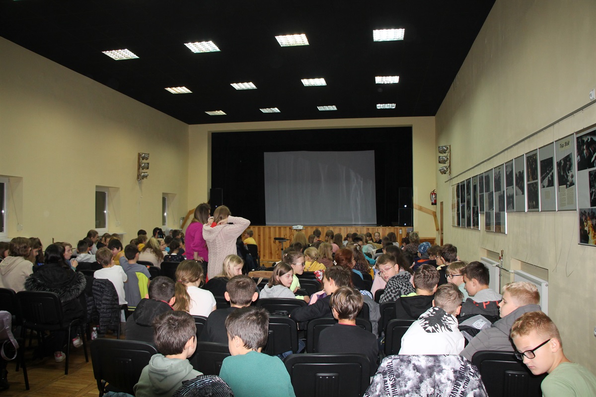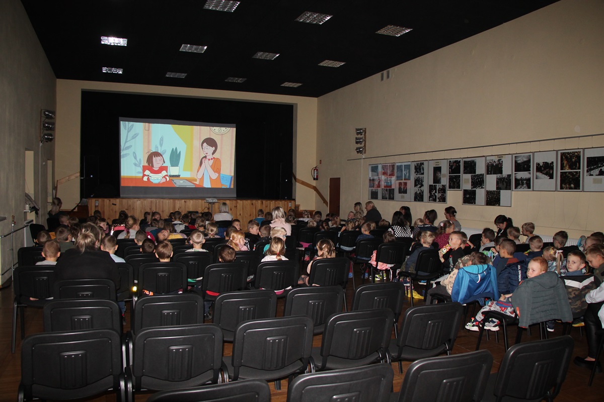 18 października w sali widowiskowej wyświetlone zostały dwa filmy: Basia 2 – dla przedszkola oraz Jakub, Mimmi i gadające psy – dla dzieci z klas I-III. W  dniu następnym odwiedziła nas młodzież z klas IV-VI oraz VII-VIII by obejrzeć kolejno Cały świat Romy oraz Lek na całe zło.